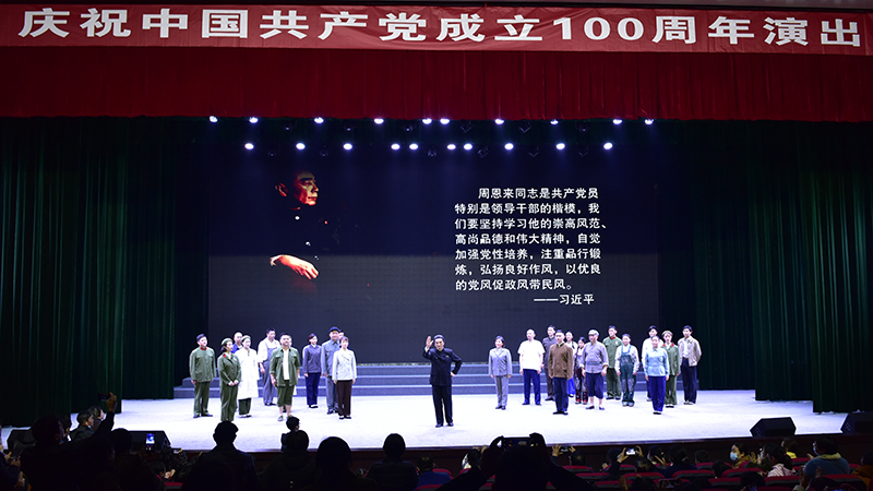 周恩來,這是一個光榮的名字、不朽的名字。周恩來同志是近代以來中華民族的一顆璀璨巨星,是中國共產(chǎn)黨人的一面不朽旗幟。作為淮安市委慶祝中國共產(chǎn)黨成立100周年獻禮作品之一,該劇以習(xí)近平總書記提出的不忘初心、堅守信仰,對黨忠誠、維護大局,熱愛人民、勤政為民,自我革命、永遠奮斗,勇于擔(dān)當、鞠躬盡瘁,嚴于律己、清正廉潔這六個杰出楷模為主線,擷取了黃河搶險、送侄回鄉(xiāng)、故鄉(xiāng)行、一件珍貴的襯衫、顧全大局、西花廳不滅的燈光、最后的歲月等七個篇章,以藝術(shù)的手法還原或再現(xiàn)了周恩來作為中國共產(chǎn)黨人杰出楷模,在為中國人民謀幸福、為中華民族謀復(fù)興、為人類進步事業(yè)而奮斗的光輝一生中的一些典型情景,再現(xiàn)和展示了周恩來這一偉岸的精神豐碑,塑造和彰顯了一名優(yōu)秀中國共產(chǎn)黨人的光輝形象,使大家深受感染并深愛感動。紛紛表示要深入學(xué)習(xí)周恩來對理想信念堅定執(zhí)著、對黨的事業(yè)忠貞不渝、對革命工作高度負責(zé)、對人民群眾情懷至深、對自我修養(yǎng)嚴格要求的精神風(fēng)范,始終做到不忘初心、堅守信仰,牢記手中的權(quán)力是黨和人民賦予的,是用來為人民服務(wù)的,一身正氣、兩袖清風(fēng),敬畏人民、敬畏組織、敬畏法紀,更好地加強自身建設(shè),做一個堂堂正正的共產(chǎn)黨人,用實際行動在新時代新征程上作出各自應(yīng)有的貢獻。