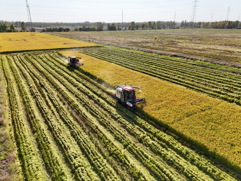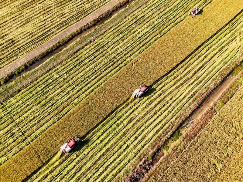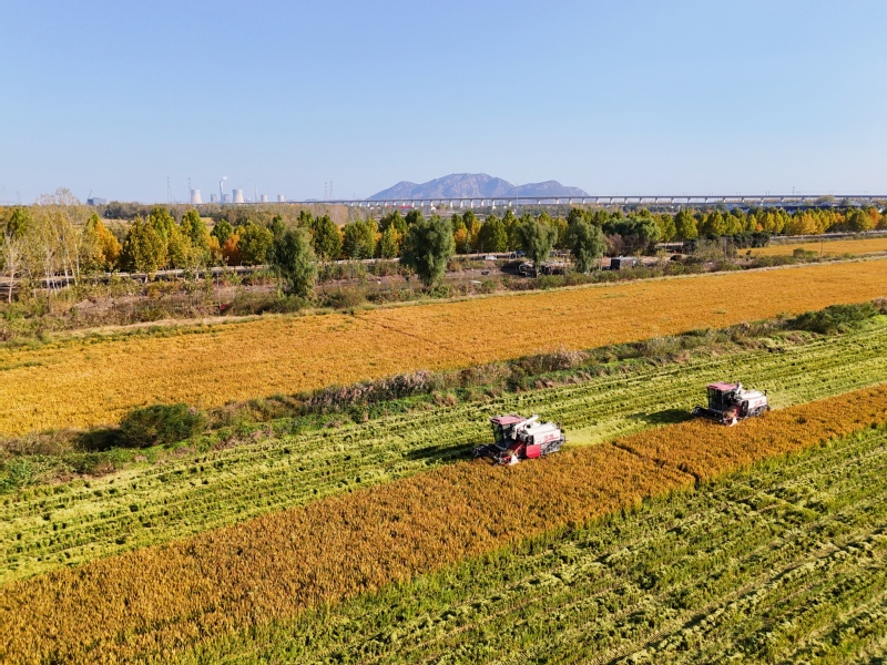 11月2日,在江蘇省連云港市海州區(qū)江蘇農(nóng)墾崗埠農(nóng)場(chǎng)的高標(biāo)準(zhǔn)農(nóng)田里,職工們利用晴好天氣,積極開(kāi)展水稻搶收工作,確保不誤農(nóng)時(shí)、顆粒歸倉(cāng)。