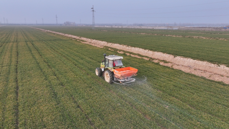 在糧食作物越冬管護方面,蘇墾農發濱淮分公司聚焦6.2萬畝秋播小大麥安全,以“因苗分類、按需補給”為核心制定科學施肥方案,精準應對不同苗情需求。其中,西瓜茬小麥重點推進“捉黃塘促平衡”,長勢均衡的稻茬麥田每畝施用氯基復合肥,苗情較差的田塊則采用“復合肥+尿素”組合模式,通過“多次少量”的精細化管理攻克黃苗弱苗難題。截至1月18日晚,該分公司麥田撒肥任務全面完成,同步推進清溝理墑與病蟲防控工作,組織人力疏通溝系避免淤塞,農技人員深入田間動態監測病蟲草害,備足應急物資確保凍害及時處置,為后續作物生產奠定堅實基礎。