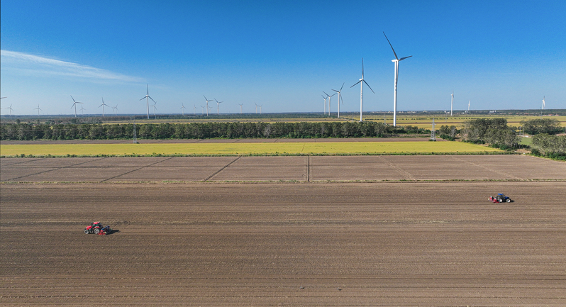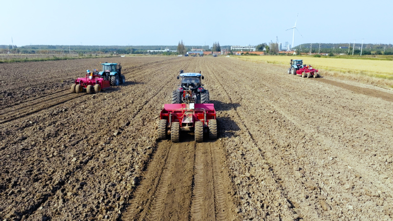 江蘇農墾土地資源開發有限公司積極開展土地平整作業。多臺大型農機在開闊的田塊上協同高效作業,經過精準翻耕、壓實與找平,原本零散破碎的地塊逐步重塑為連片規整的高標準農田。